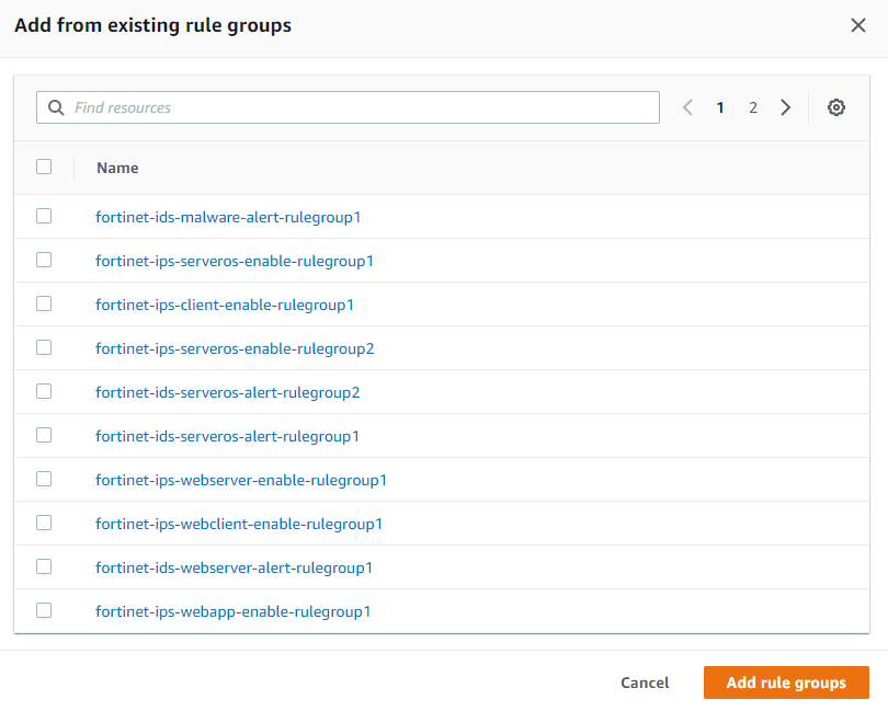 - Under Stateful Rule Groups, select Add Rule Groups.