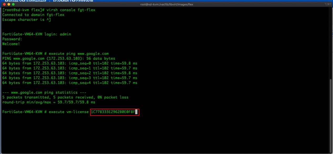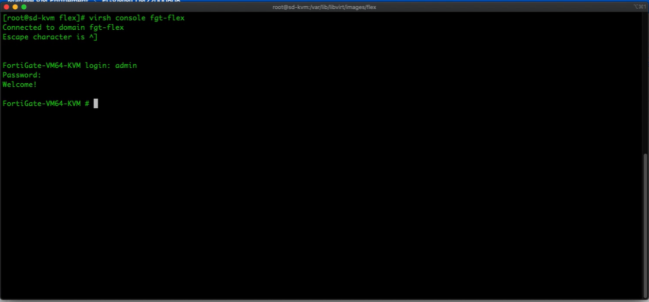 1. Open the KVM host which has already deployed the FortiGate VM and connect to it.