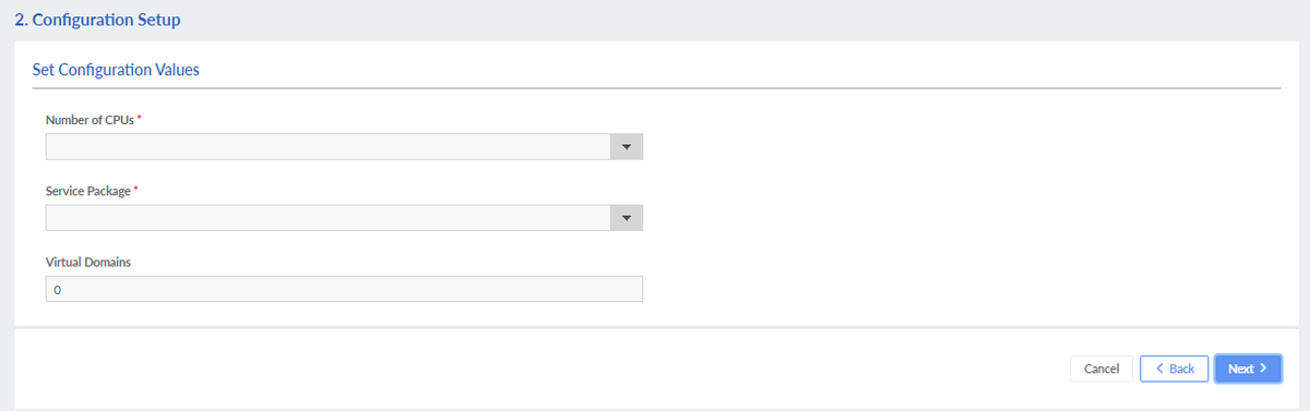 4. Set the configuration values and click Next.
