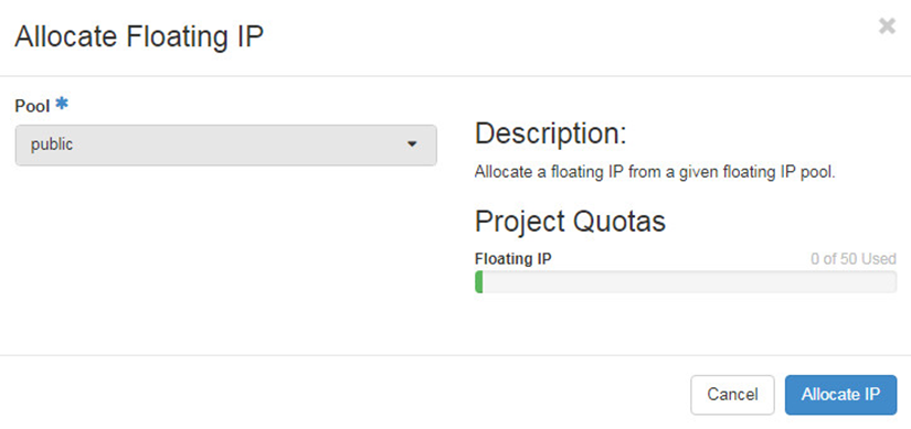 Allocate Floating IP in Project > Network > Floating IPs.
