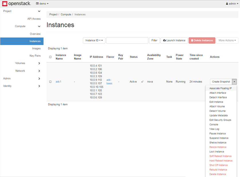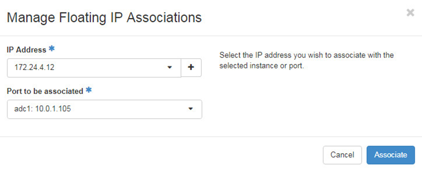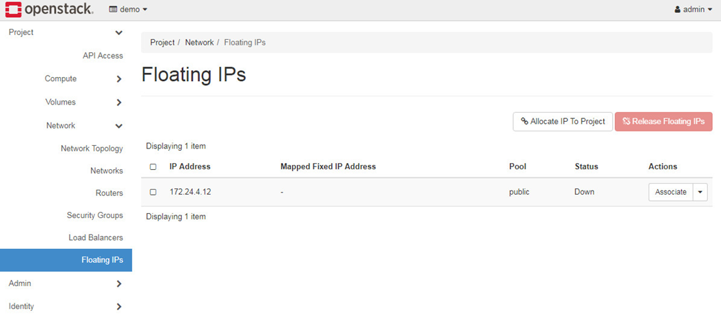 Assign Floating IP 172.24.4.x in public network to Instance.