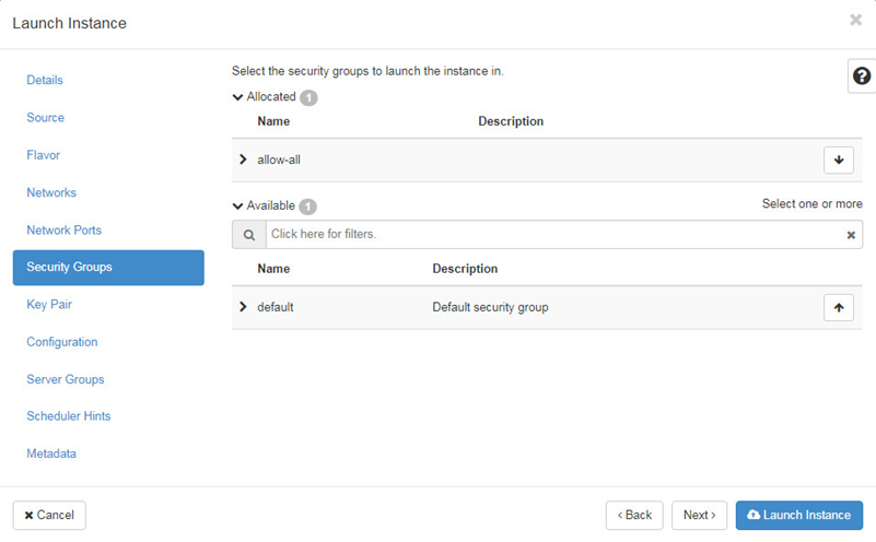 Configure Security Groups and then click "Launch Instance".