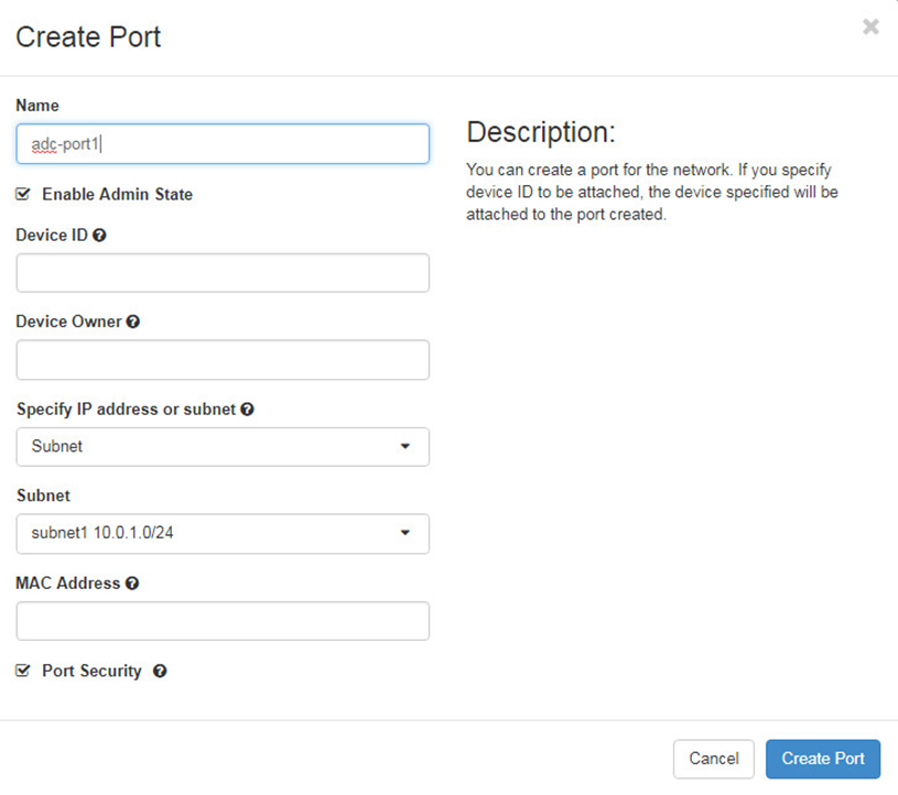 Click Ports tab and then create 10 ports in different subnets for FortiADC interfaces.