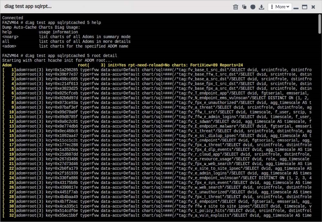 Too many auto-cache tasks will take a lot of resources and affect the performance of FortiAnalyzer. Ideally, we would like to combine similar hcache queries into one query, so fewer hcache tables need to be created for the auto-cached reports. Datasets that contain those hcache queries need to be adjusted accordingly. |