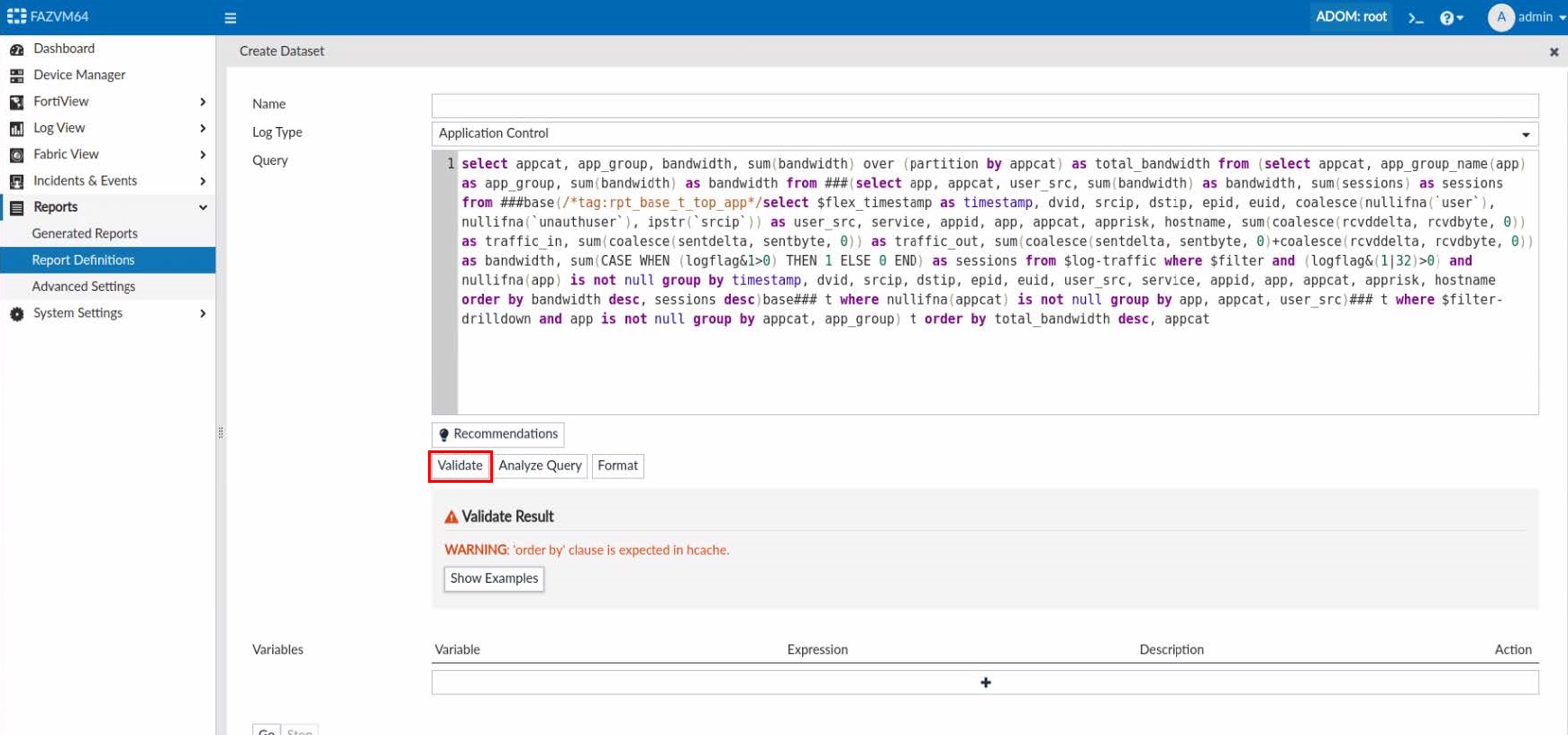 If there is any warning or error message in the validation result, click Show Examples to review query examples on how to correct the issues.