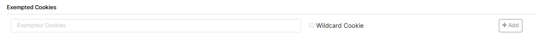 To match cookies with a wildcard, the Wildcard Cookie box beside the Exempted Cookies text field must be checked. If unchecked, the asterisk (*) is treated as a literal character instead of a wildcard.