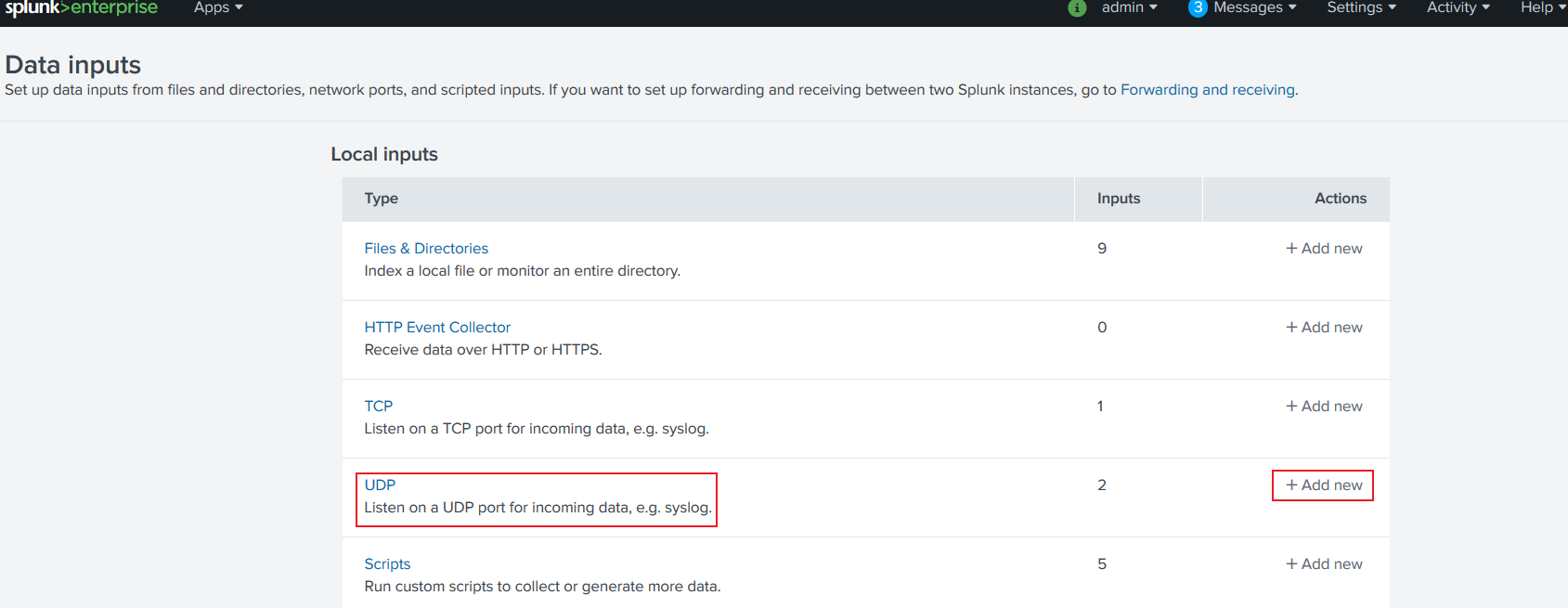 - Go to Settings > Data Inputs. Verify that you have a UDP data input enabled on port ,for example, 514.