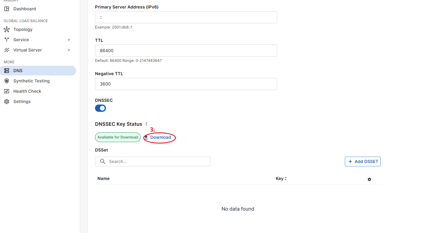 GSLB DNS servers will retain the old DNSSEC key for 14 days after a new key is generated to ensure uninterrupted service. After this period, DNS requests signed with the old key will be rejected.