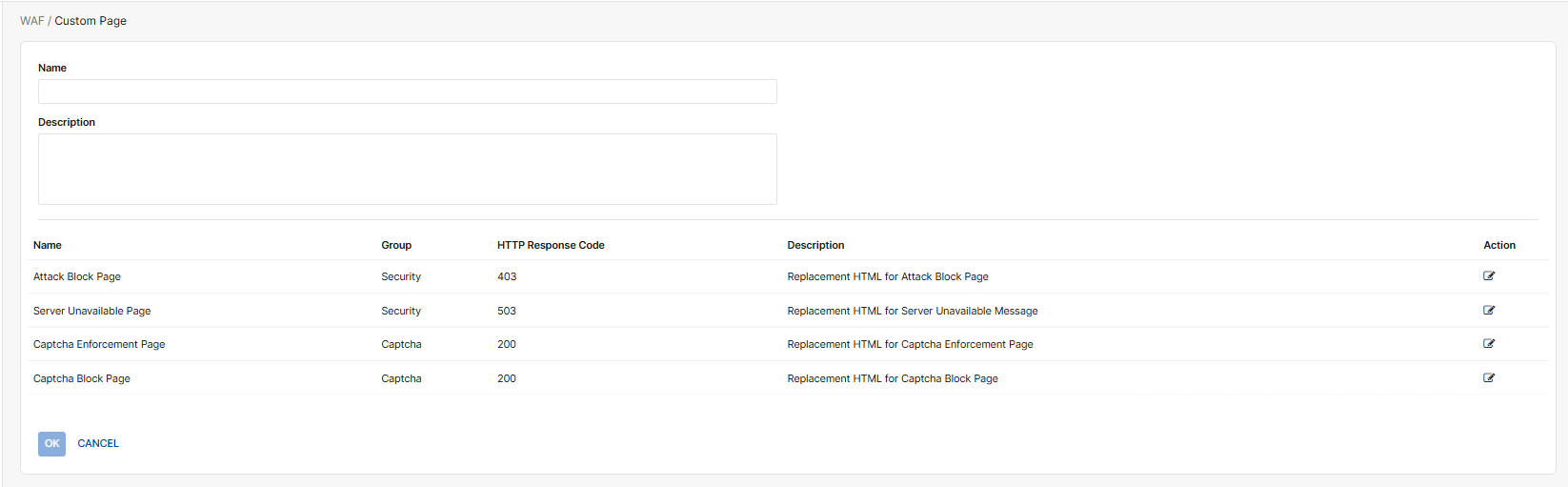A single FortiAppSec Cloud account can create up to 8 custom pages in total. This quota is shared by all users under the same account.