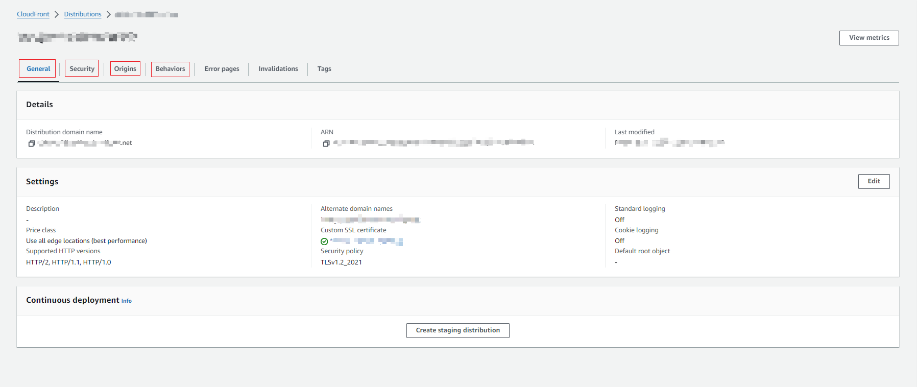 Behaviors: Default Cache Behaviors Configurations (details in Default Cache Behavior).