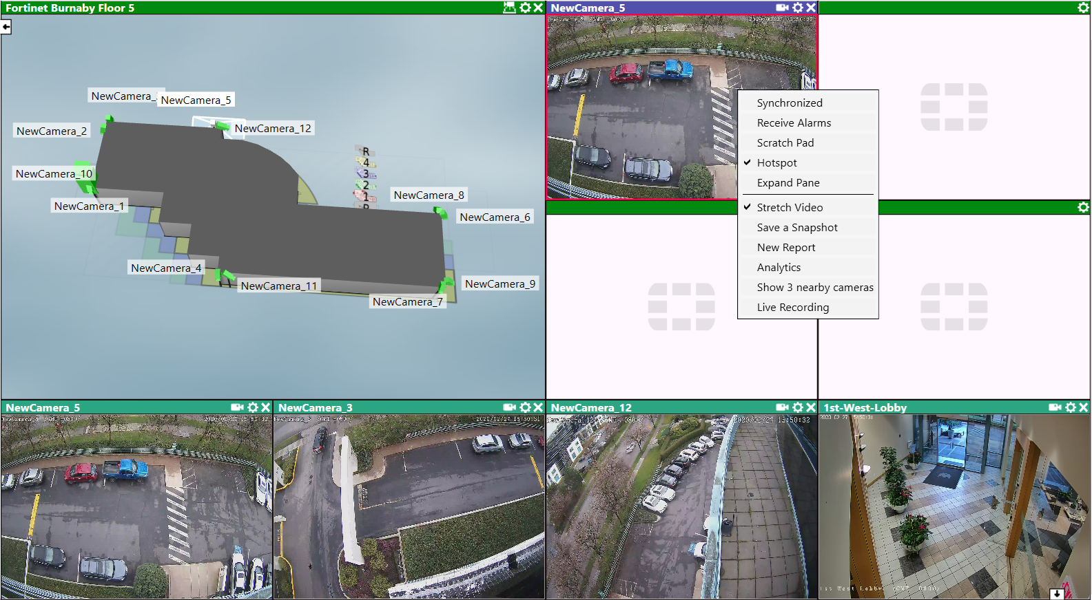 If you often use nearby cameras, you can save time by adding this set of view panes to your layout and saving it as the default view when you log in. -