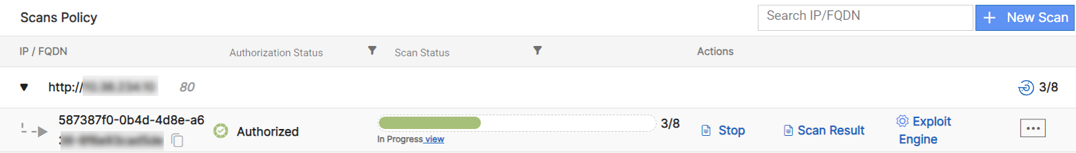 Click Scan. A progress bar is displayed with the status of the scanning process. You can terminate the scanning process by clicking on Stop. After the current scanning process is complete, you can scan the asset again, click Rescan.