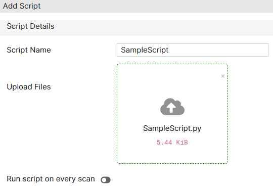 6. Enable Run script on every scan toggle to execute the uploaded script with each scan.