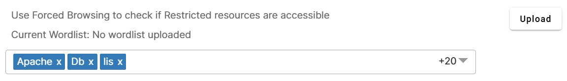 You can test if restricted resources are accessible leading to sensitive information exposure using a built-in word list. The following technologies are supported: