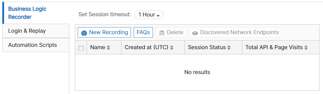 The Session Status shows if the session is valid. If expired, you are prompted to log in again when you perform scan. You can modify the session timeout at any time, and the latest timeout value updates all recordings based on the cookies or session details of the most recent recording. |
