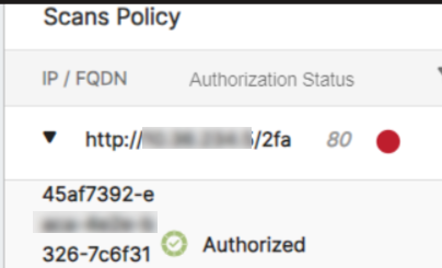 Once the scan is initiated, a red icon is displayed next to the scan IP in the Scan Policy page. This indicates that the scan is awaiting user input to proceed.