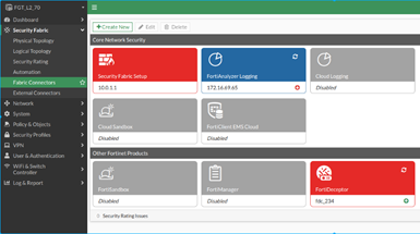 - In FortiGate, log in as an admin and go to Security Fabric > Fabric Connectors.