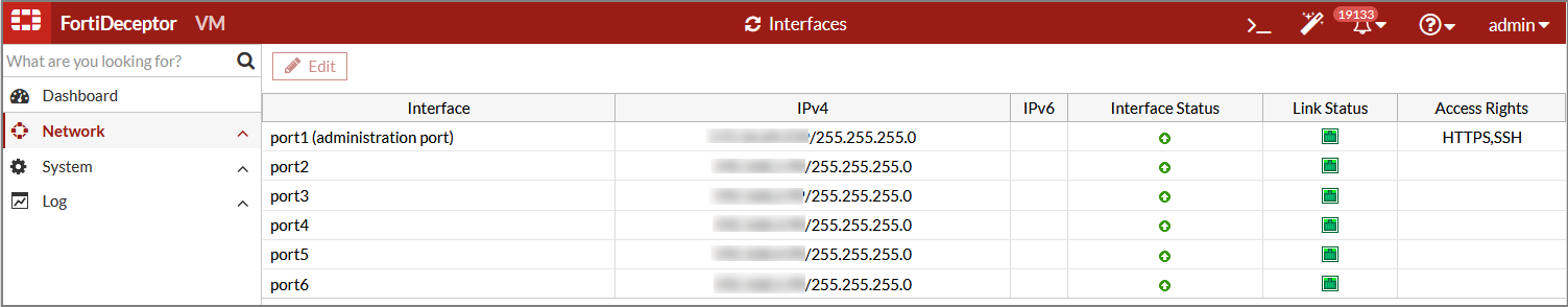 When a FortiDeceptor is managed as a Remote Client the navigation pane will only displays the Network, System and Log modules.