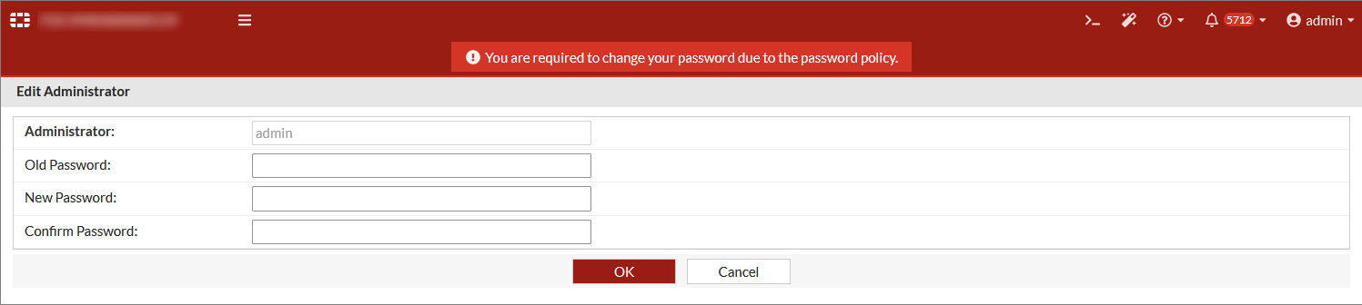 - In the FortiDeceptor banner at the top, click the username and select Change Password.