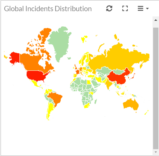 The Global Incidents Distribution widget displays the number of attackers by country on a global map. Hover over each country to see the number of attackers from each country.
