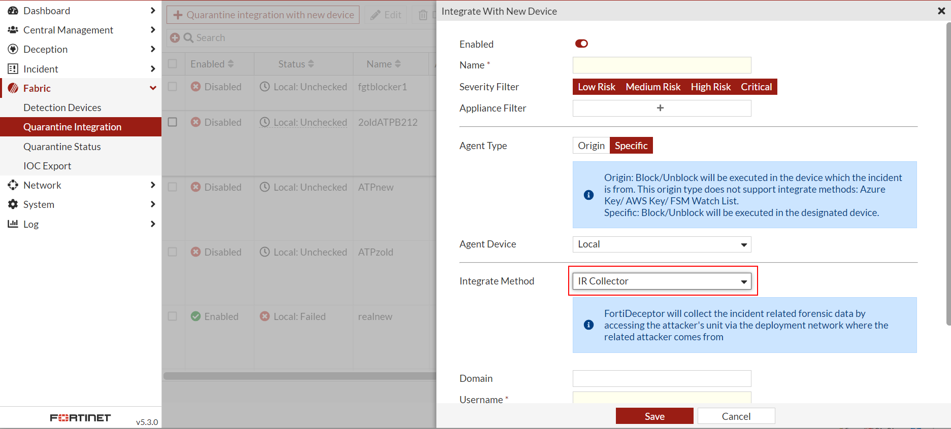 1. Go to Fabric > Quarantine Integration