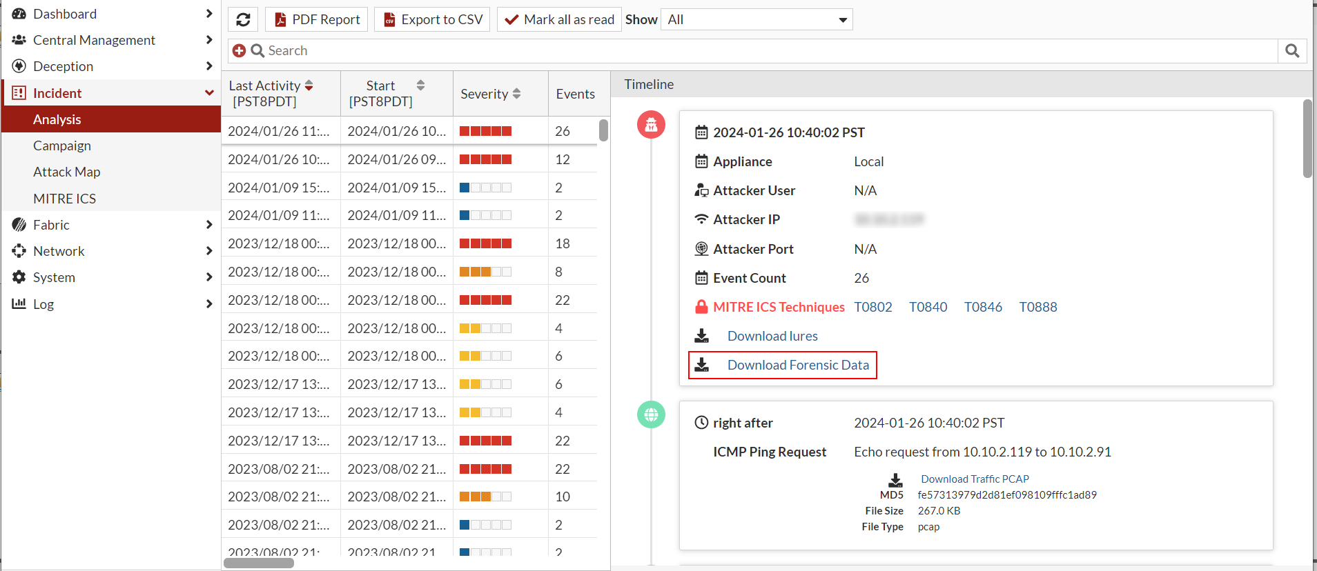 3. Click Download Forensic Data. The artifacts are saved as a Zip file.