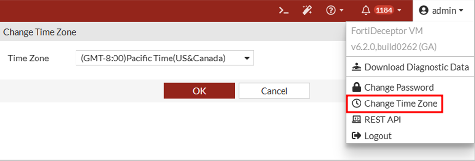 You can change the FortiDeceptor system time in the Dashboard. You can configure the FortiDeceptor system time manually or synchronize with an NTP server.