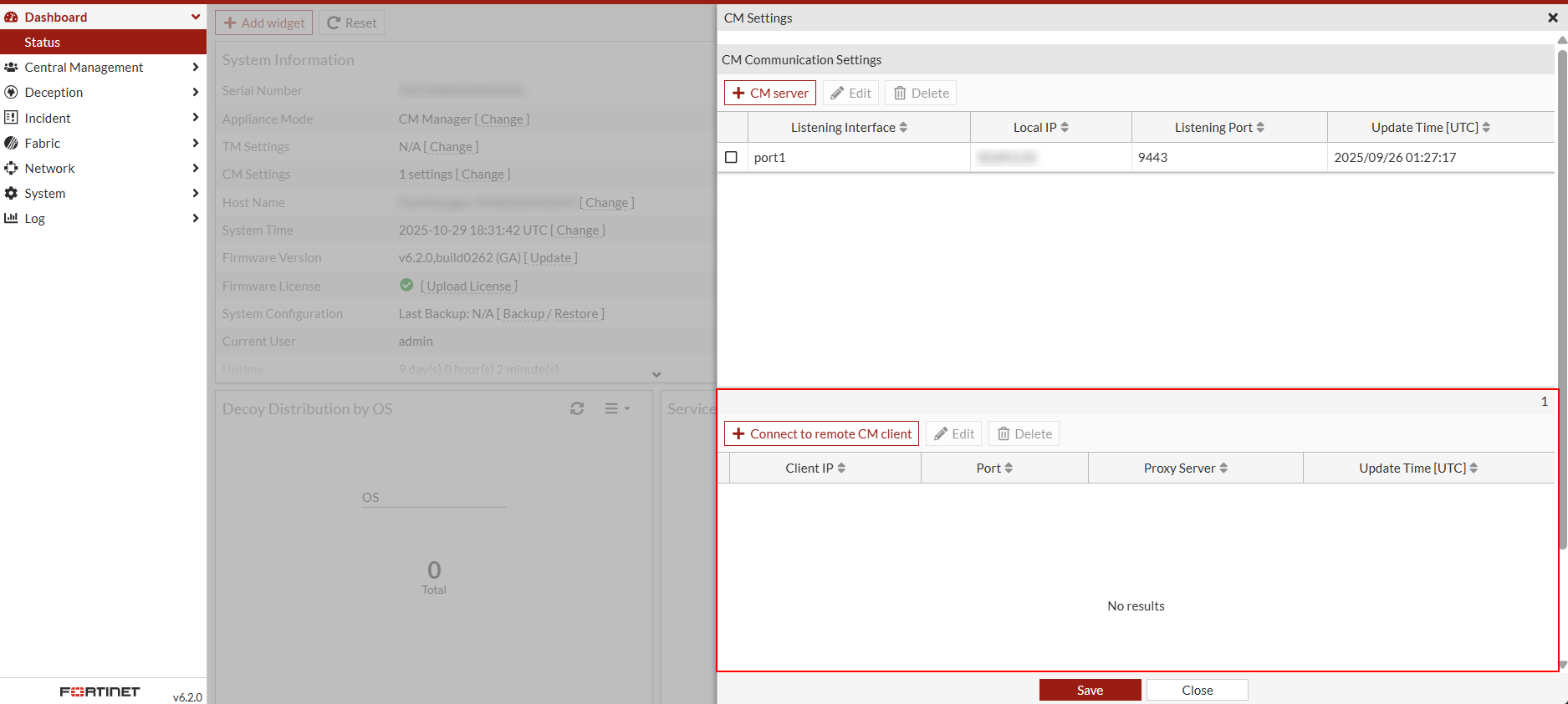 - On the FortiDeceptor manager, configure the CM Settings: