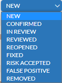 You can modify the status of each vulnerability or of all vulnerabilities, select Select Multiple and set the status.