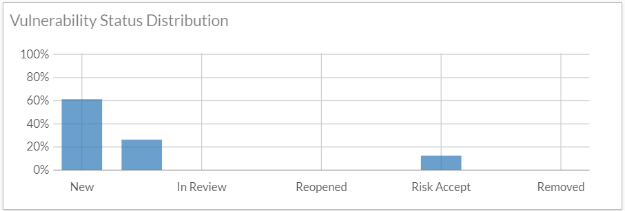 Vulnerability Status Distribution: Chart showing the percentage of applications with vulnerabilities in different statuses (New, Confirmed, In Review, Reopened, Fixed, Risk Accepted, False Positive, and Removed).