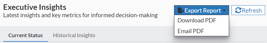 Download PDF: Click Export Report > Download PDF to download the report in PDF format.