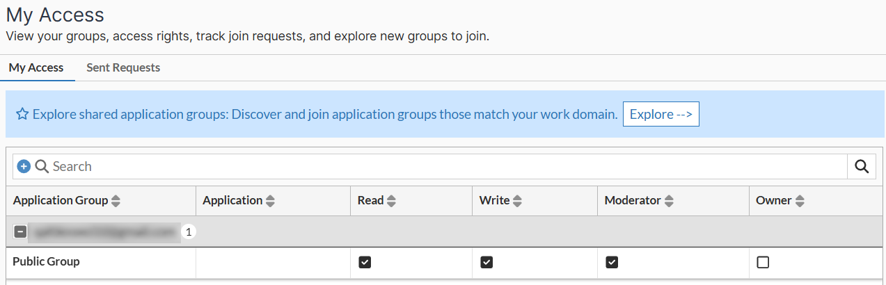 Note: Sent Requests and Explore options are available only for users with Read, Write, and Moderator access.