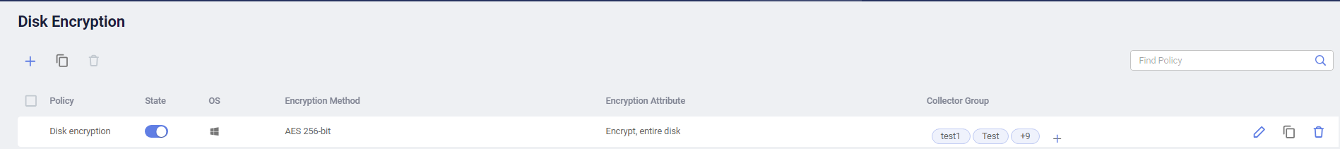 To configure a disk encryption policy to enforce disk encryption on specific Collector groups: