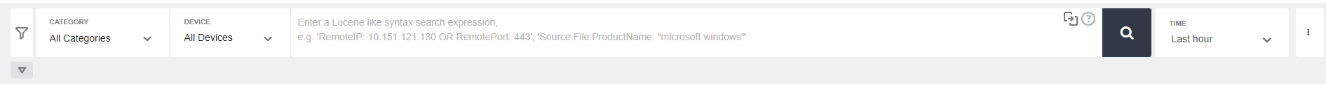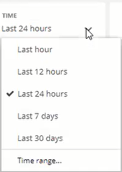 The Time filter enables you to filter for a specific time period. The default is the last hour.