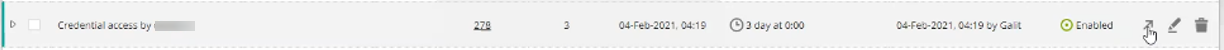 You can modify a saved query by hovering over it. The following tools are displayed on the right of the row: