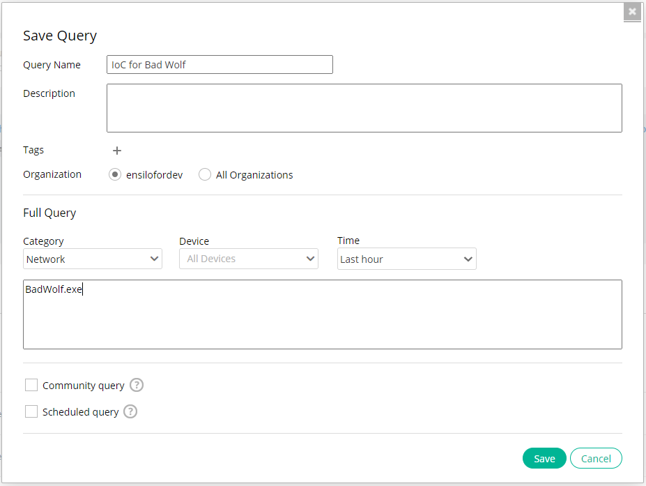 - Community Query: Select this option to specify that it is shared with the entire EDR community including other organizations.