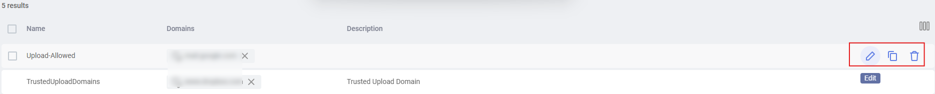 To allow upload from specific websites, edit the rule and click Add Domain Group to select the relevant domain groups, such as Allow file upload.