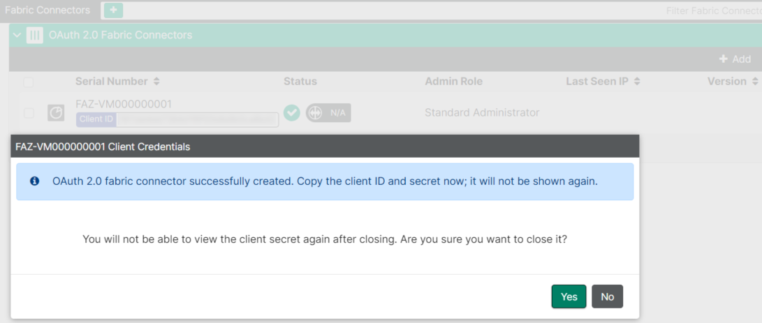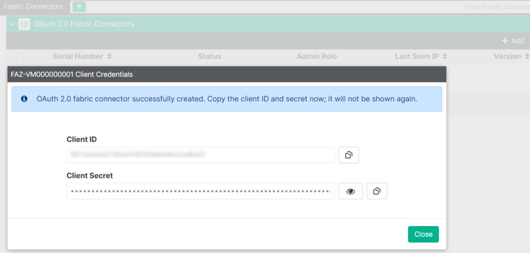 The Client ID and Client Secret can be used by other Fortinet devices that support OAuth 2.0 Fabric connector features to call FortiClient EMS APIs.