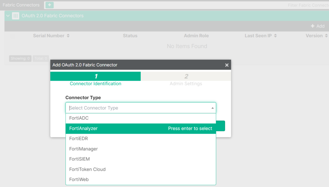 EMS supports a connector type that uses OAuth 2.0 token-based authentication. When you create an OAuth 2.0 connector, EMS generates a client ID and secret for use by the Fortinet product on the other side of the connector. You can integrate EMS with the following Fortinet products: