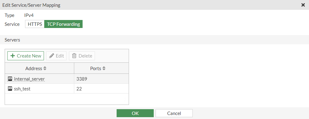 - For Service, select TCP Forwarding.