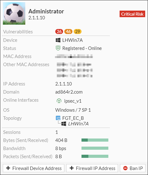 If applicable, the endpoint's host can be quarantined (click Quarantine Host) or their IP address can be banned (click Ban IP).