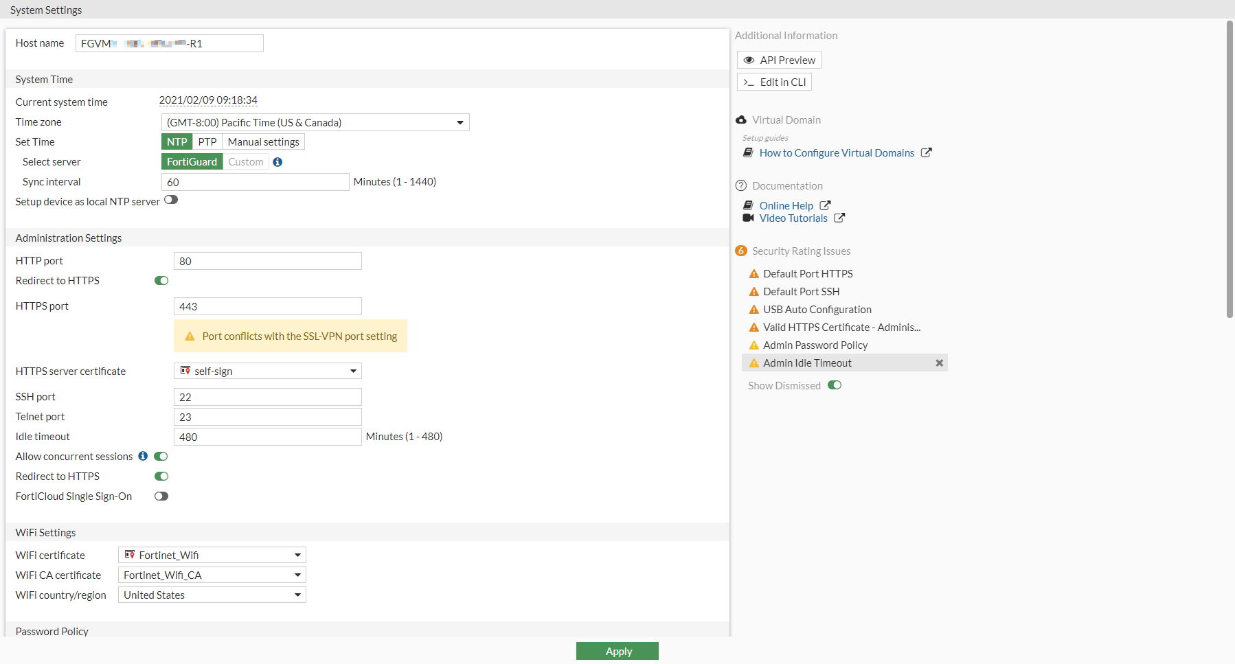 In multi-VDOM mode, security rating reports can be generated in the Global VDOM for all of the VDOMs on the device. Administrators with read/write access can run the security rating report in the Global VDOM. Administrators with read-only access can only view the report.