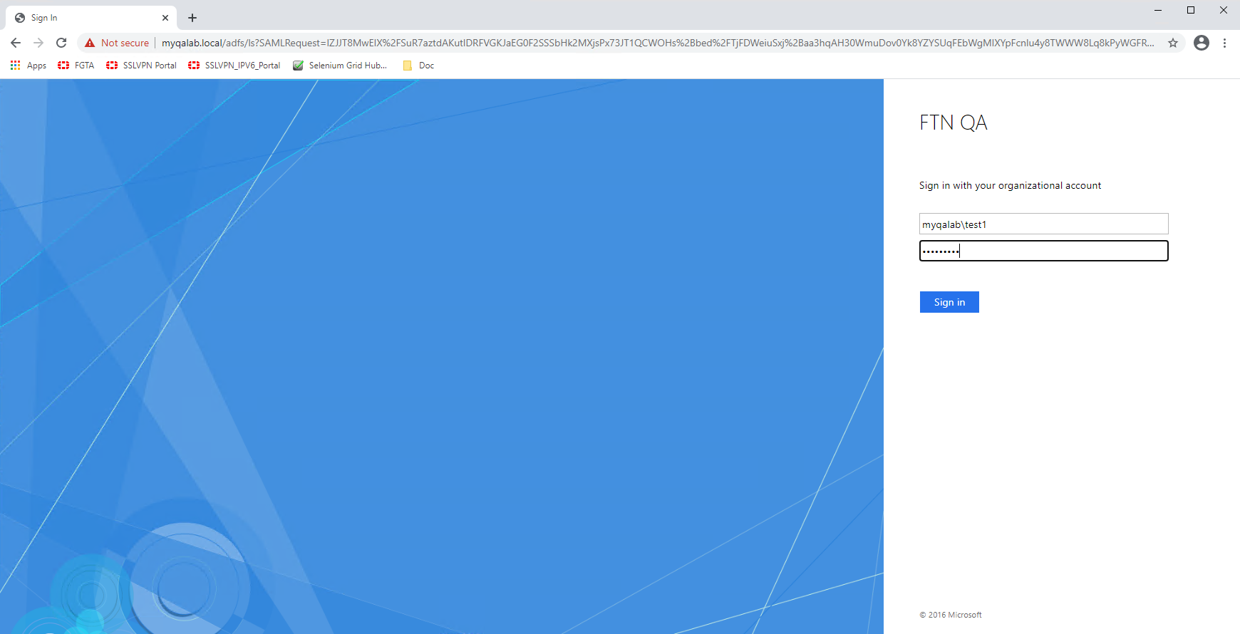 Enter your user credentials. The SAML server authenticates and sends a SAML assertion response message to the FortiGate.