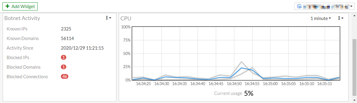 If you do not see the widget, click Add Widget, and add the Botnet Activity widget.