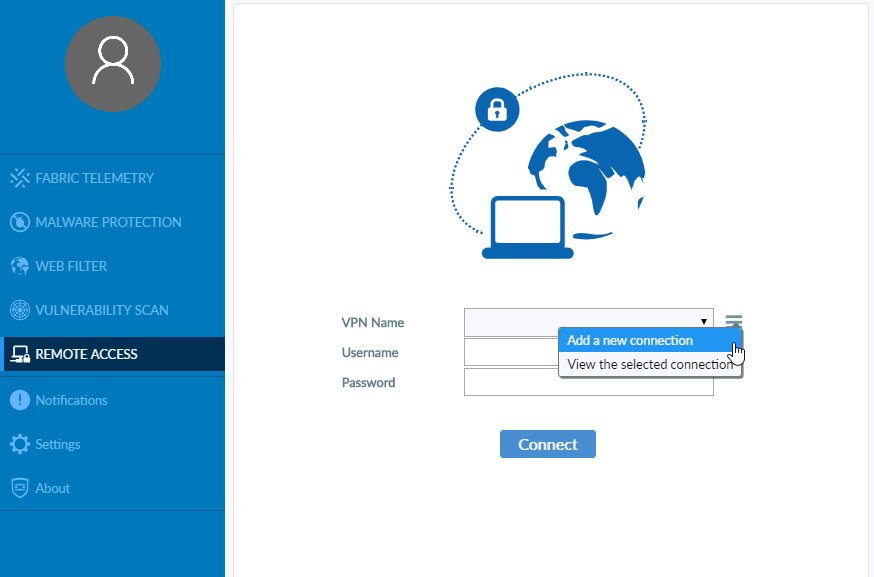 1. In FortiClient, go to REMOTE ACCESS > Add a new connection.