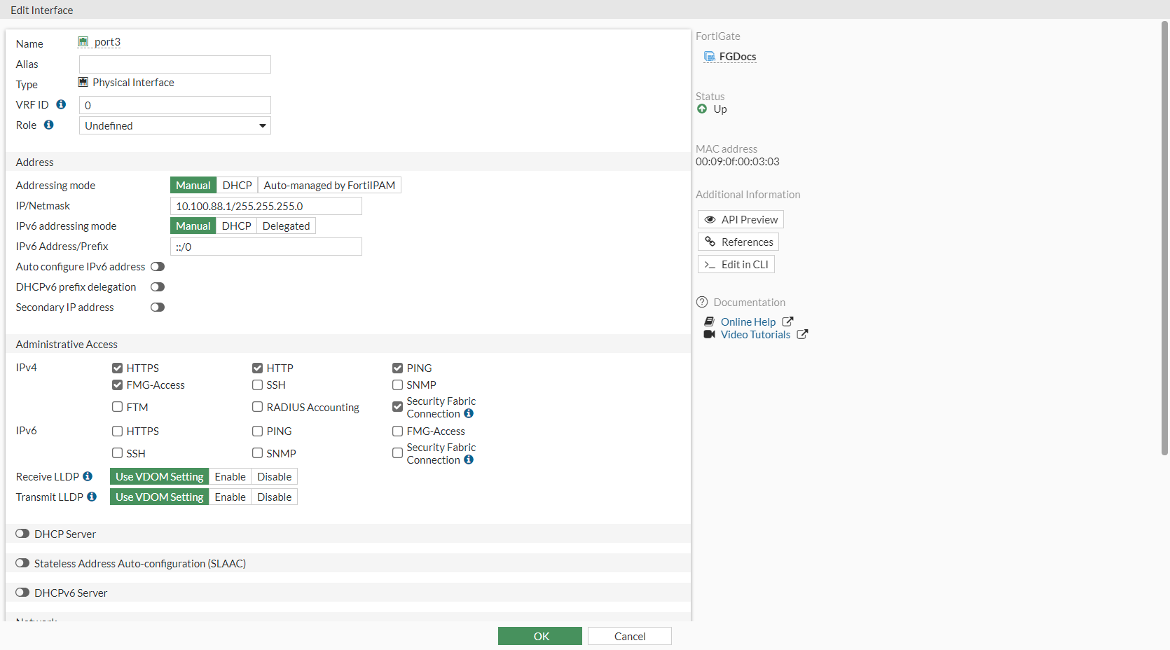 - If the interface's role is undefined, under Administrative Access, set Receive LLDP and Transmit LLDP to Use VDOM Setting.