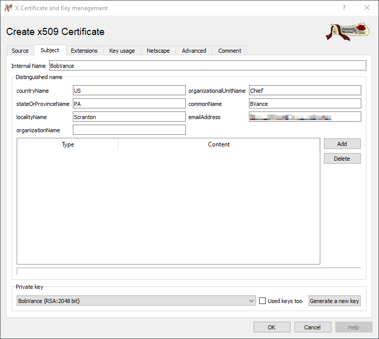 Creating certificates with XCA