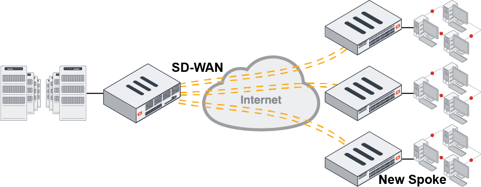 config system sdwan config service edit 3 set name "Office365" set mode sla set internet-service enable set internet-service-app-ctrl 33182 config sla edit "office" set id 2 next end set priority-members 1 2 next end endThe SD-WAN configuration can now be used in as a template for new spokes, as in Example 2.