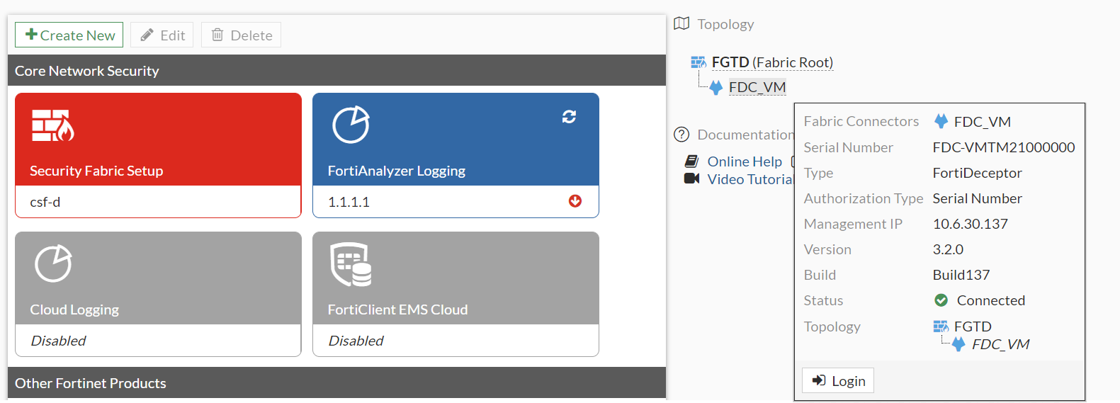 config system csf set status enable set group-name "csf-d" set downstream-access enable set downstream-accprofile "super_admin" end - In FortiDeceptor, integrate the device: