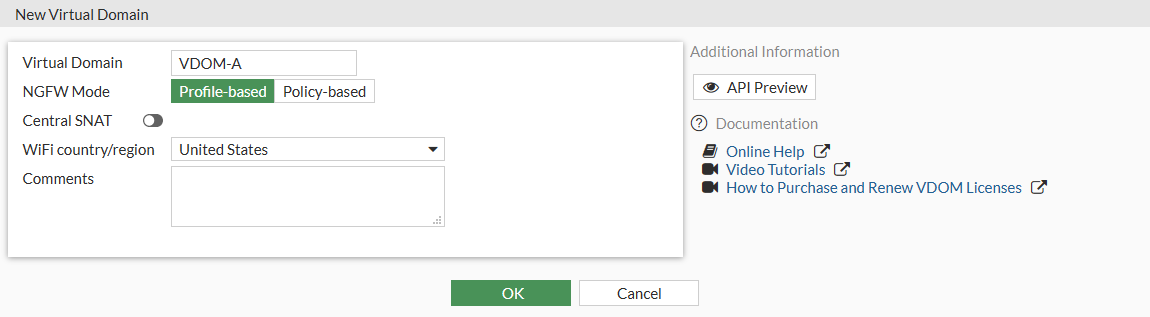- In the Global VDOM, go to System > VDOM and click Create New.